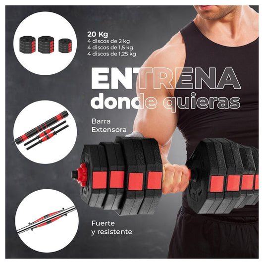 Set Mancuernas de 20 Kg convertible en Kettlebell
