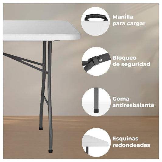 Mesa Plegable Portátil para Interior y Exterior 180x74x74