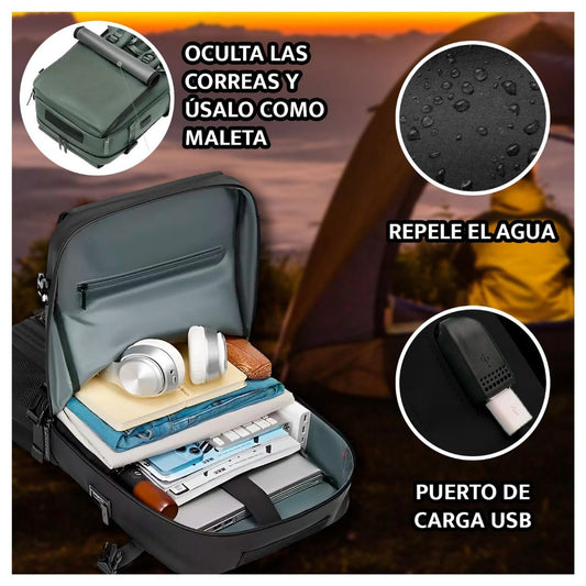 Mochila Multifuncional Viajera Impermeable Puerto USB Diseño Expandible