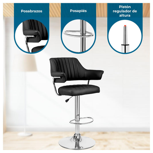 Pack 2 Sillas Taburete Piso Bar Giratoria con Respaldo Cuadrado