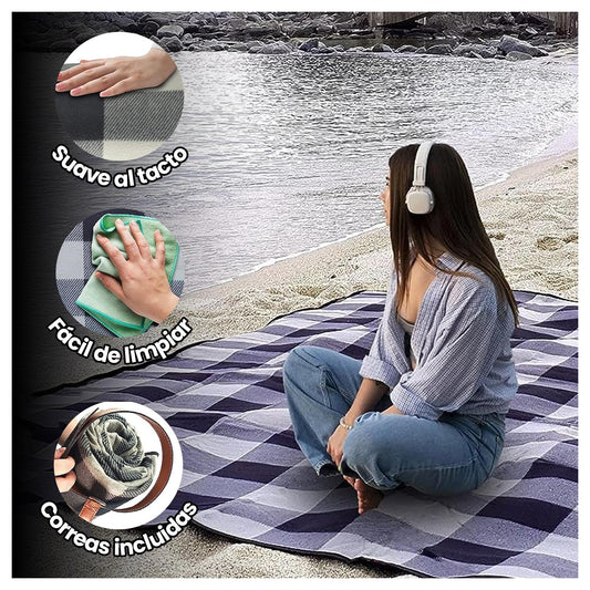 Manta Térmica para Picnic cuadros Negros con Blanco Negro