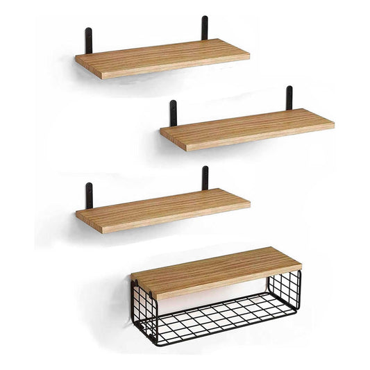 Repisas flotantes de madera Set de 3 niveles con canasta metálica