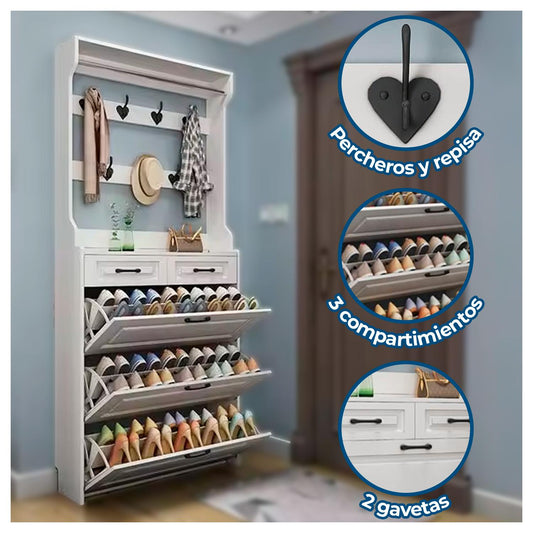Armario Multifuncional Elegante: Perchero, Cajones y Zapatera