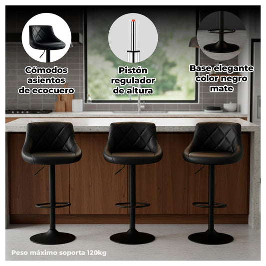 Pack 2 Piso Bar taburete Base Negra Giratorio y Ajustable