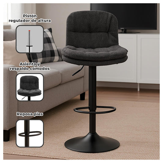 Silla de Bar Ajustable base negra y tela Premium Estilo Nórdico