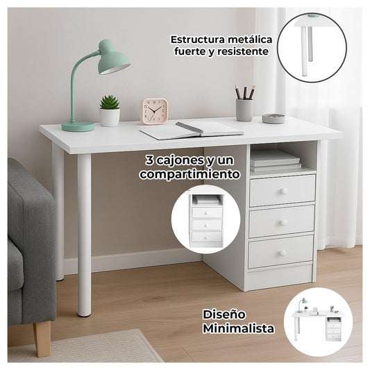 Escritorio con 3 Cajones Blanco para Casa Estudio u Oficina