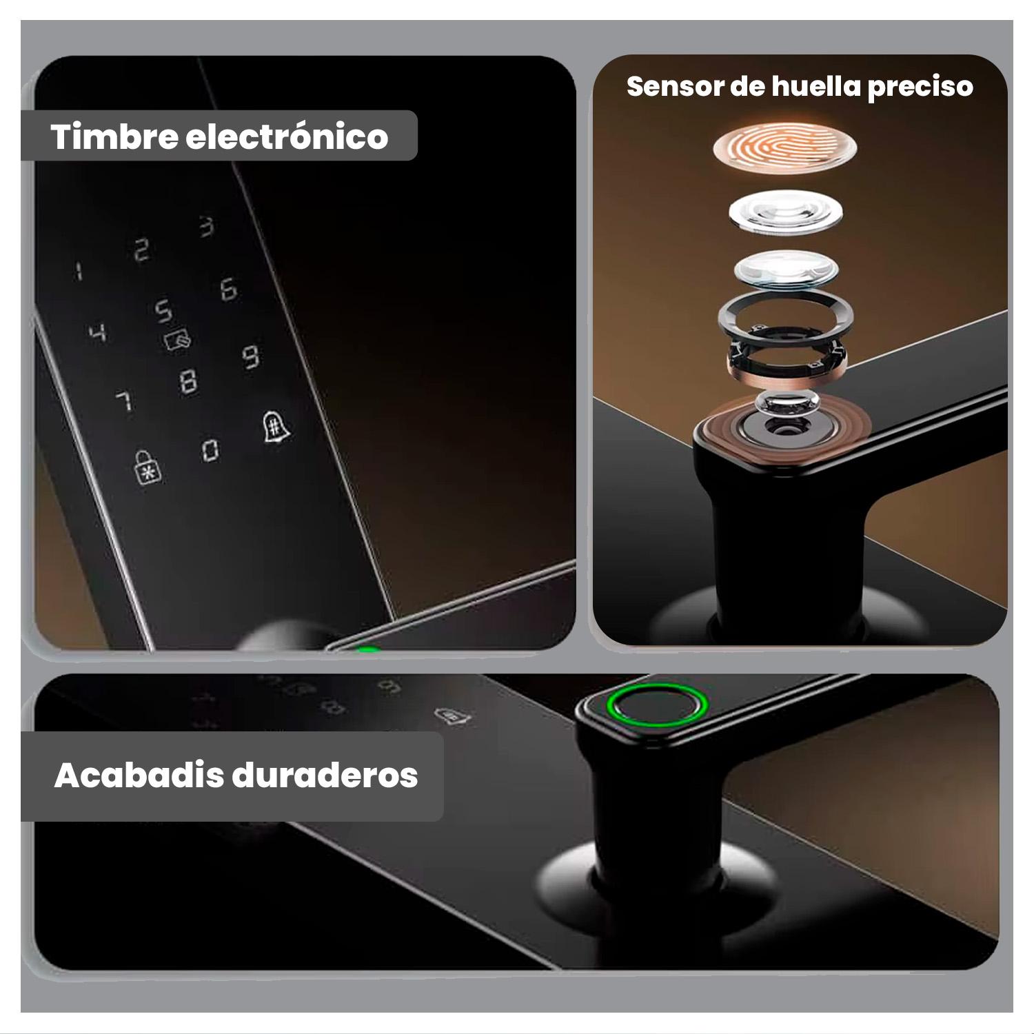 Fabricada con materiales de alta resistencia y diseñada para facilitar tu día a día, esta cerradura inteligente combina comodidad y tecnología de punta, eliminando los problemas de llaves perdidas o accesos no deseados.