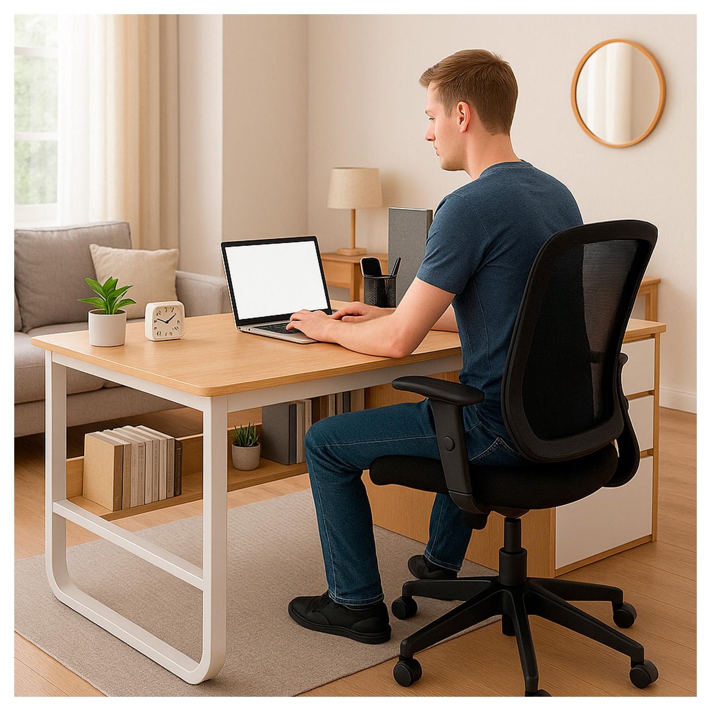 Estilo minimalista que combina con oficinas modernas, home office o dormitorios juveniles.