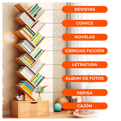 • Diseño Compacto y Espacioso: A pesar de su tamaño reducido, este librero tiene capacidad para almacenar más de 50 libros , optimizando el espacio sin sacrificar estilo.