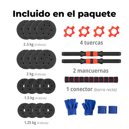 Mancuernas con Peso 30 kg Ajustable y Guantes Incluidos