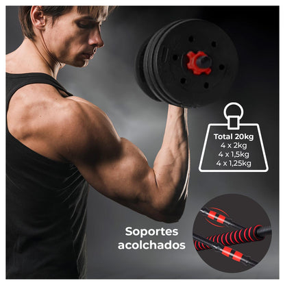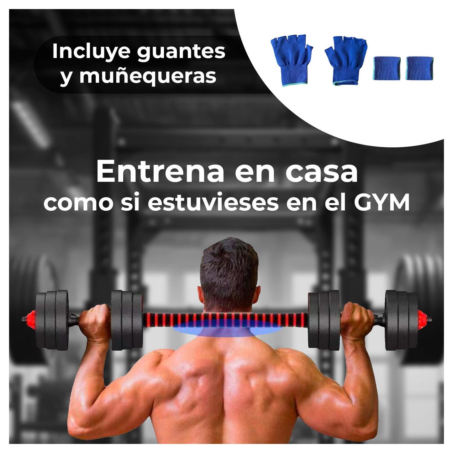 Transforma tu espacio en un gimnasio completo! Este set de mancuernas ajustables 2 en 1 con barra y guantes incluidos es perfecto para entrenar todo tu cuerpo en casa, sin complicaciones ni equipos pesados. Su diseño multifuncional se adapta a cualquier nivel y tipo de entrenamiento: tonifica, fortalece y gana músculo desde la comodidad de tu hogar. ¡Ya no hay excusas para no comenzar hoy mismo!