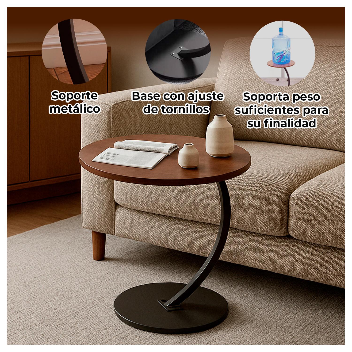 Dale un estilo cómodo y práctico a tu hogar con esta mesa auxiliar de diseño moderno . Su base metálica curva y su tablero de madera se convierten en la combinación perfecta de elegancia y funcionalidad . Ideal para colocar en el salón, dormitorio o incluso como mesa de café, su resistente estructura y liviana permite moverla con facilidad y aprovechar cada rincón de tu hogar. **Perfecta para apoyar tu computadora portátil, libros, café o decoración favorita.Perfecta para apoyar tu computadora portátil, libros, café o decoraciones favoritas.