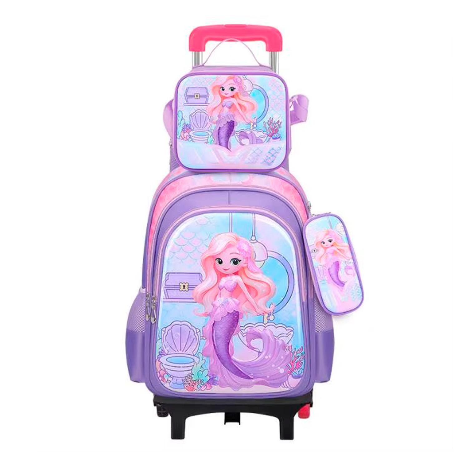 Mochila de sirena 3 en 1 con ruedas, lonchera y cartuchera