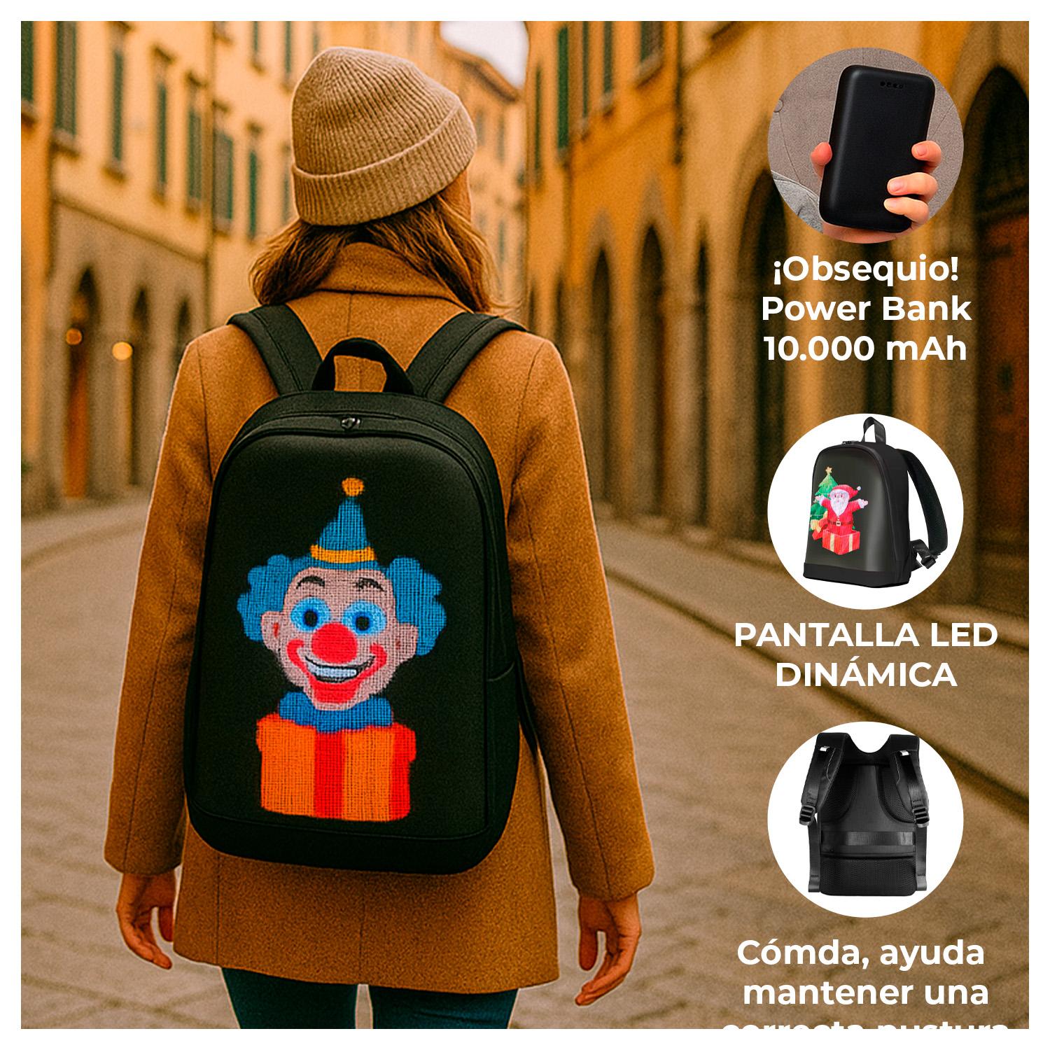 Mochila LED Personalizable con Pantalla Animada y Power Bank