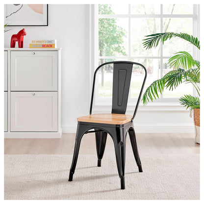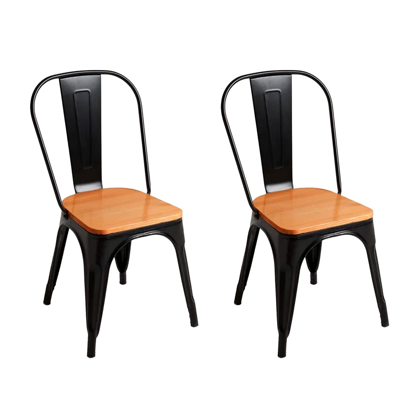 Pack 2 Sillas de Metal con Asiento de Madera Vintage y Elegante