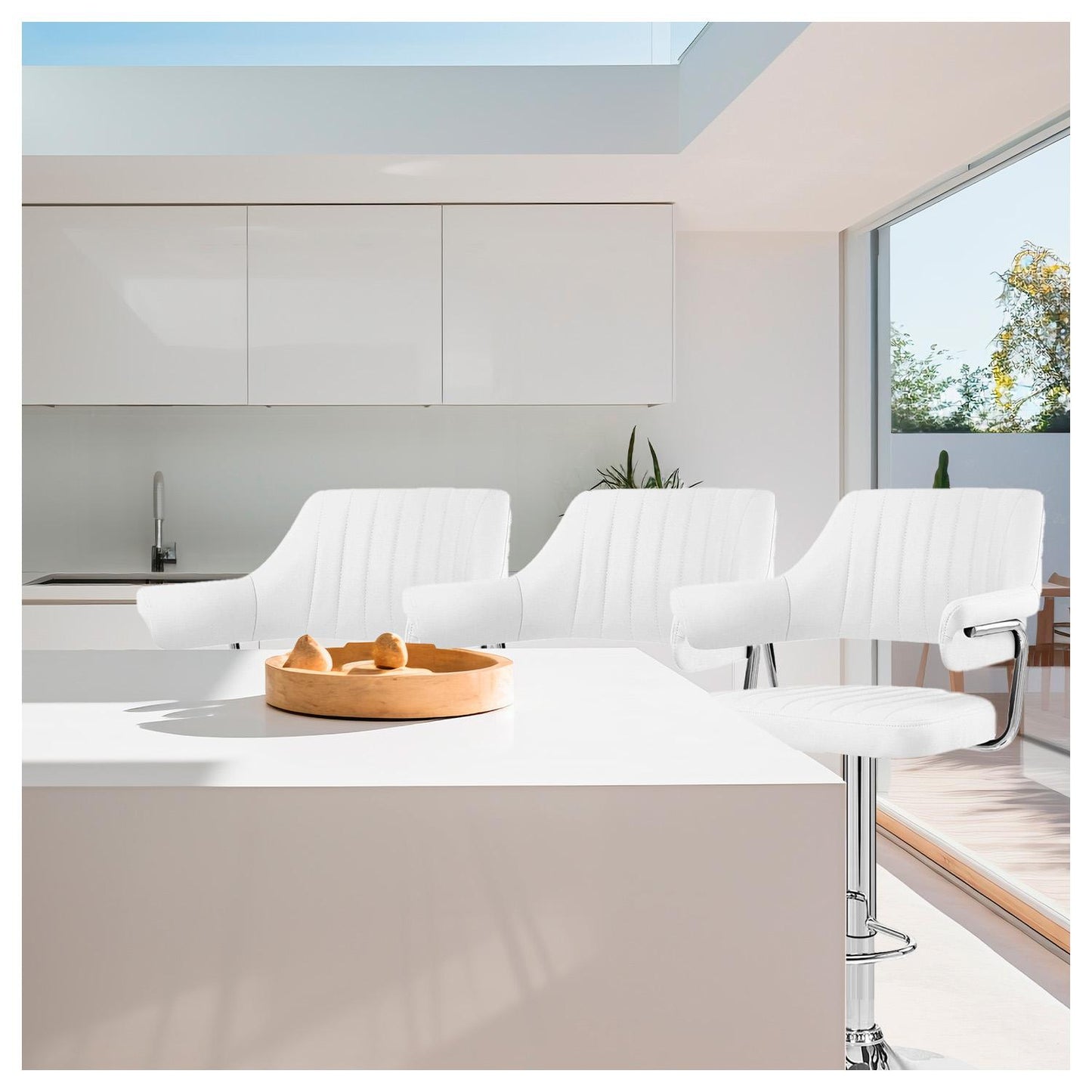 Asiento giratorio de 360 grados: el diseño giratorio y el reposapiés integrado permiten un movimiento sin esfuerzo y comodidad al estar sentado. Mecanismo de elevación a gas: se ajusta desde la altura del mostrador hasta la barra, este taburete de bar se adapta fácilmente a cualquier mesa de comedor, mesa de bar o isla de cocina. Cuero duradero: aunque el cuero es un producto artificial, el envejecimiento resalta su pátina natural, haciéndolo aún más hermoso con el tiempo. Comodidad y soporte perfectos: la espuma de la tapicería está formulada para ser de firmeza media, que es el equilibrio óptimo para esa sensación suave y acuñadora. Diseñado para una distribución uniforme del peso y alivio de presión.