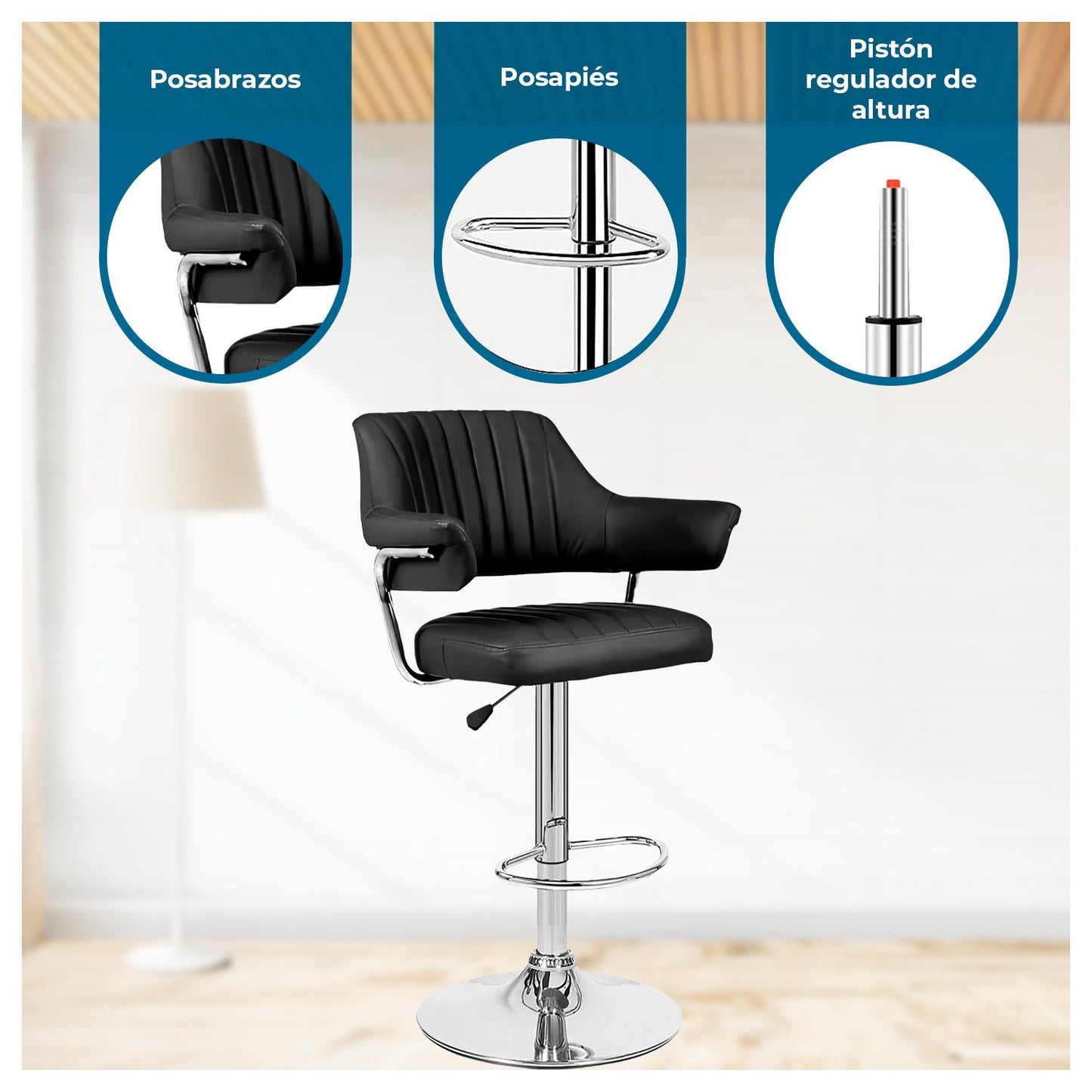 • Ajuste de Altura Personalizable : Cuenta con un mecanismo de elevación a gas que se adapta a diferentes alturas de barras, mostradores o mesas.