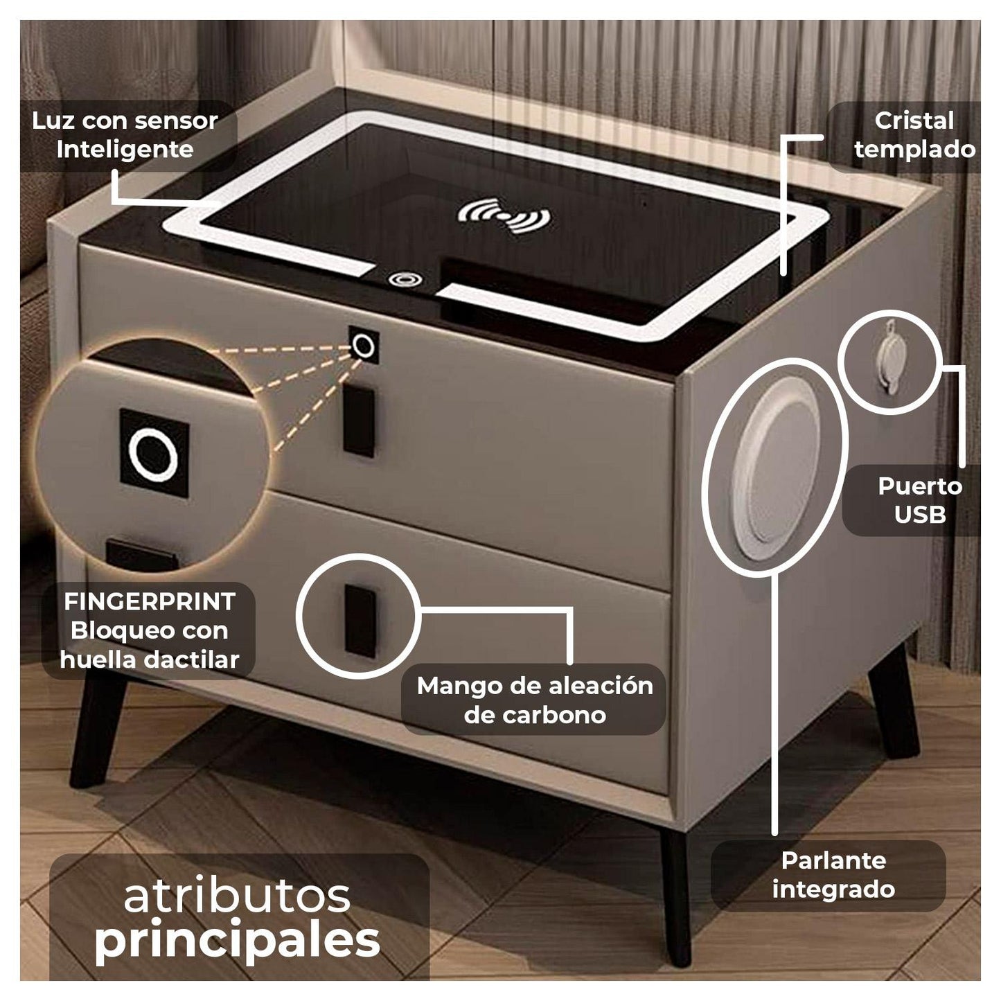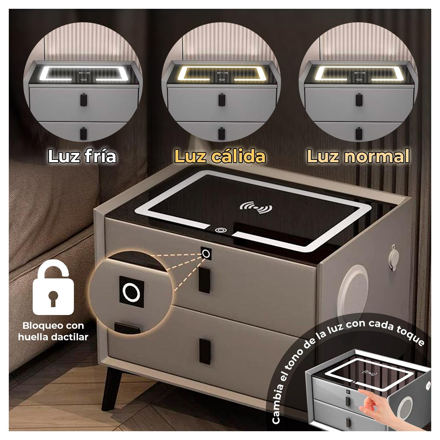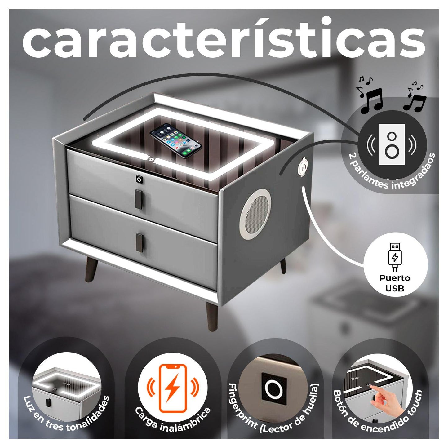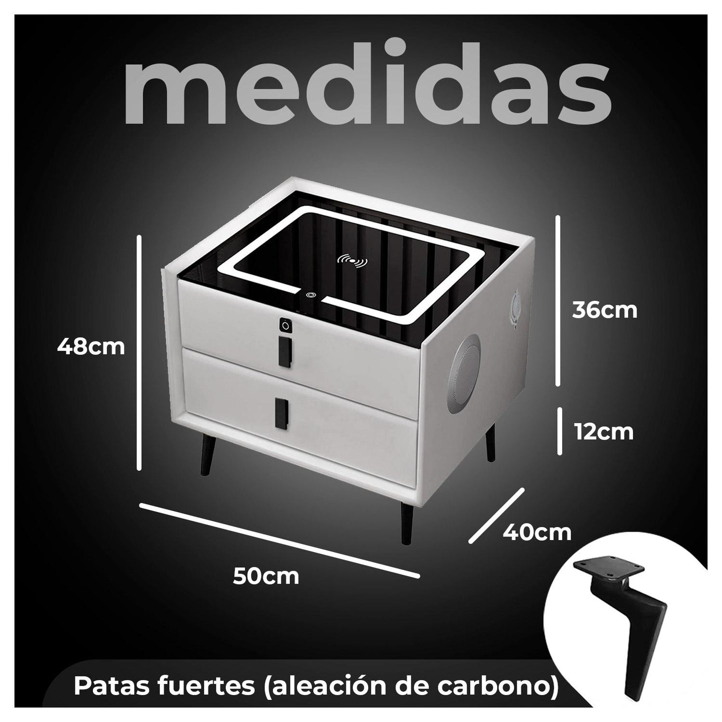 · Mesa de noche con estación de carga: La carga inalámbrica inteligente es para teléfonos de ultima generación (Magsafe) también posee 2 puerto de carga USB y uno tipo C, que puede cargar dos dispositivos al mismo tiempo. ( Posee un parlante que