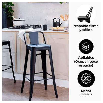 Pack 4 Silla Alta de Metal para Barra Diseño Vintage y Resistente