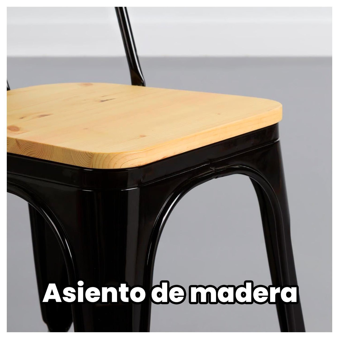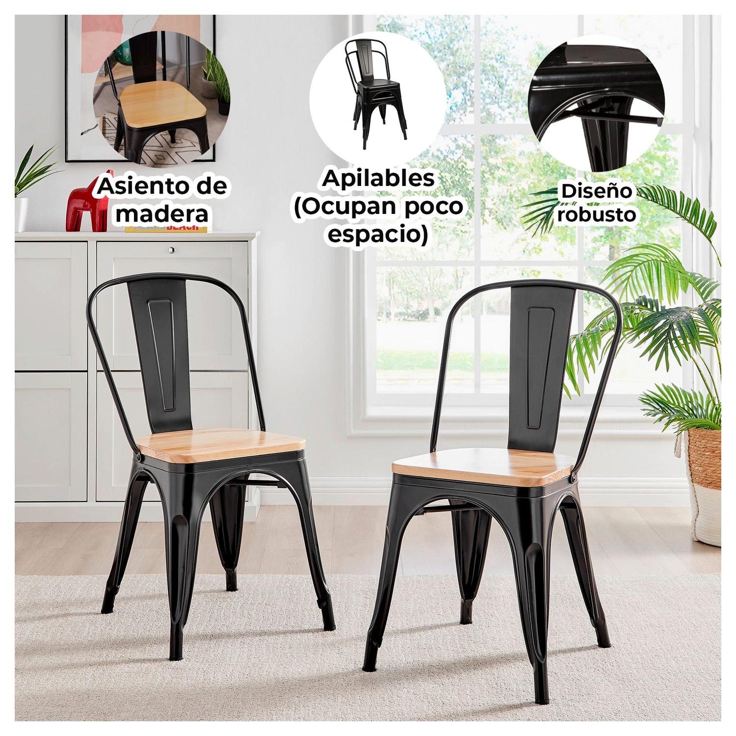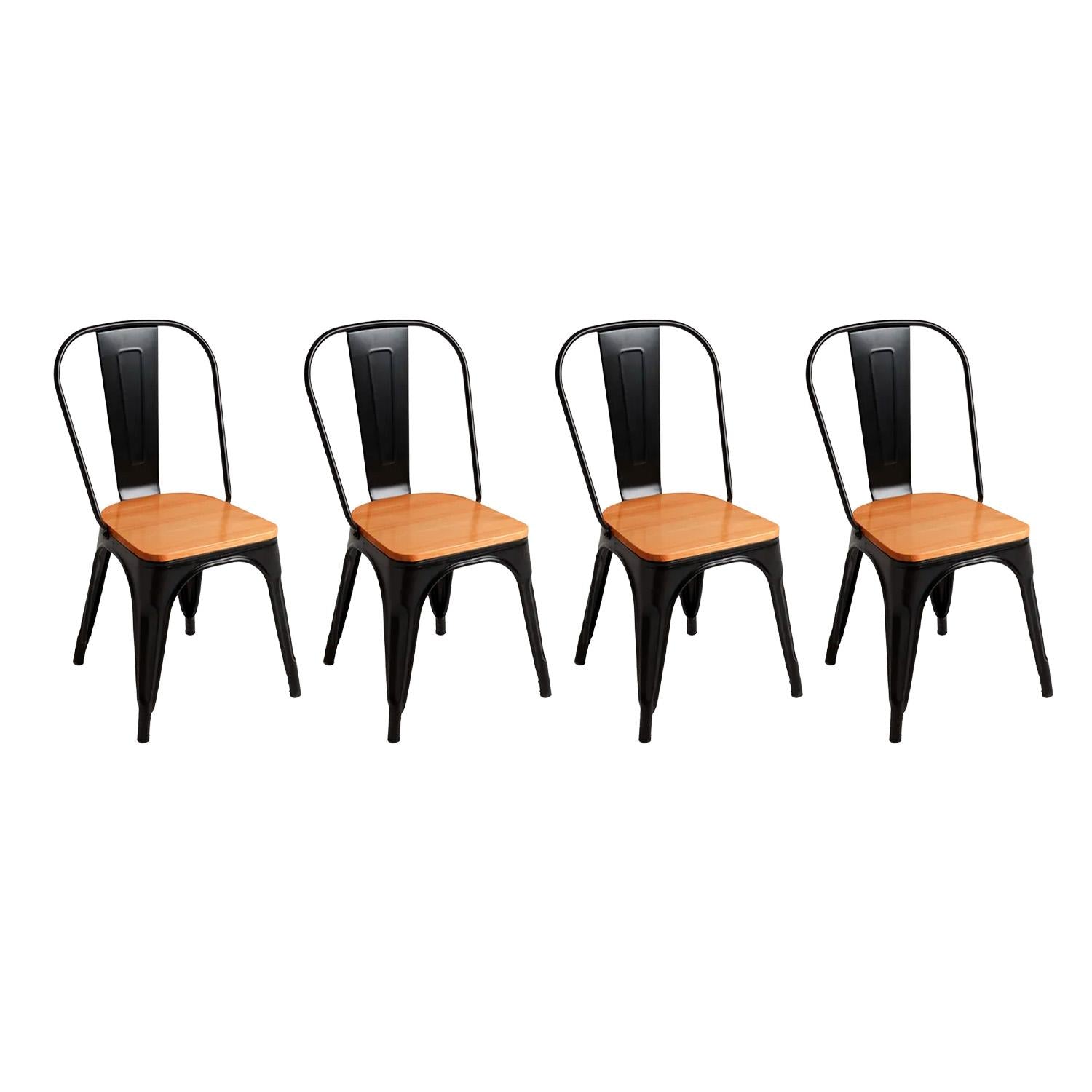 Pack 4 Silla de Metal con Asiento de Madera Vintage y Elegante
