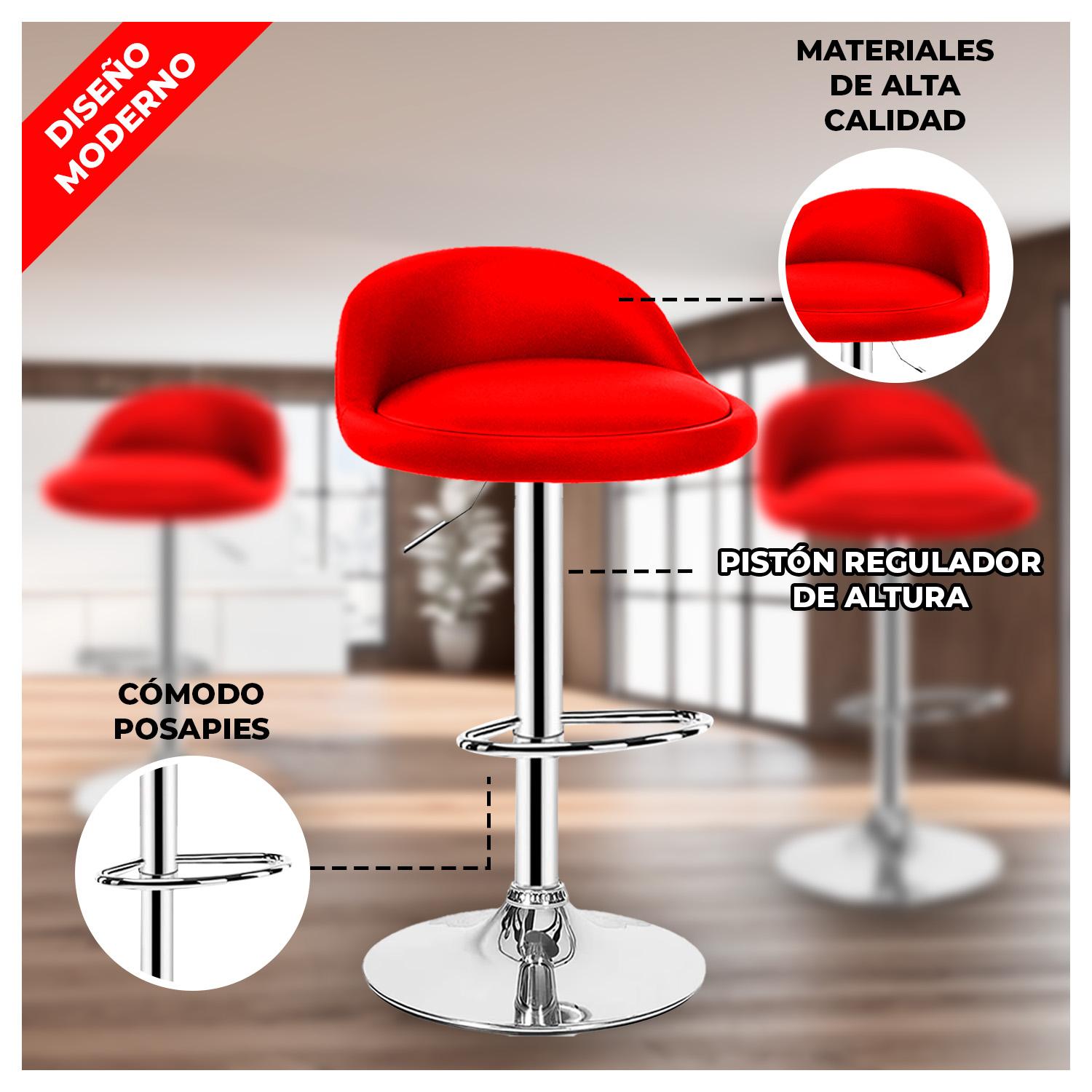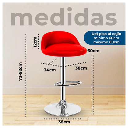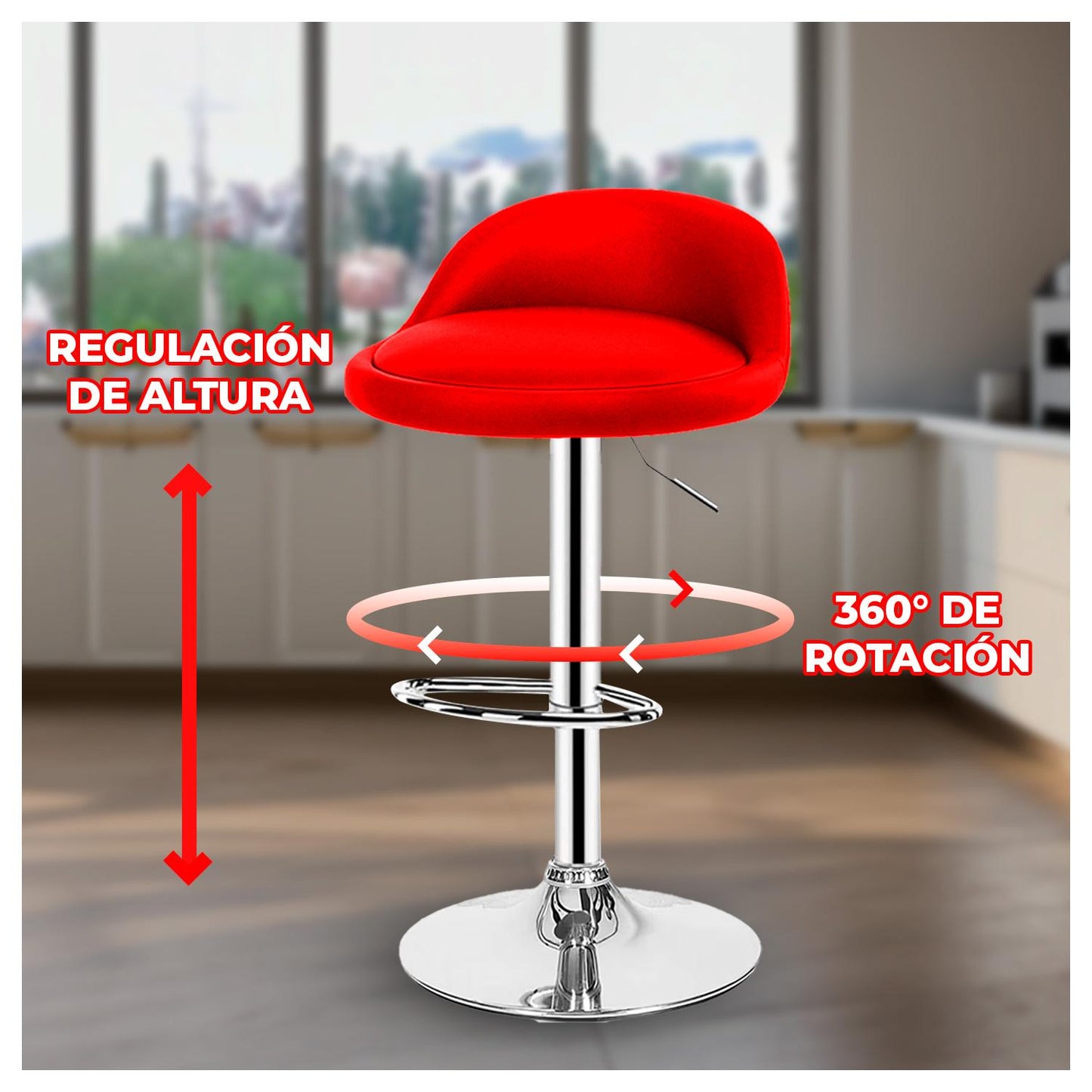 • Altura Ajustable y Versátil : Gracias a su pistón hidráulico, permite regular la altura entre 60 y 80 cm, adaptándose a diferentes mesas y barras.• Comodidad Ergonómica : Asiento acolchado con espuma gruesa que proporciona un soporte cómodo para uso prolongado.• Diseño Elegante y Clásico : Fabricado con piel sintética de alta calidad y costuras rectas que aseguran un acabado limpio y cómodo.• Durabilidad y Fácil Limpieza : Cubierta de poliuretano resistente y de fácil mantenimiento, ideal para el uso diario. Base y Reposapiés de Metal : Ofrecen estabilidad, resistencia y un diseño funcional, con un reposapiés que mejora la comodidad al sentarse.
