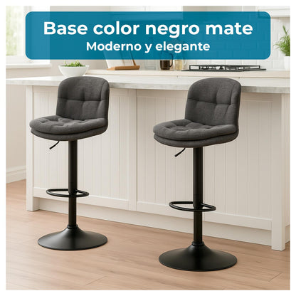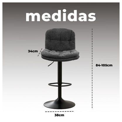 Silla de Bar Ajustable base negra y tela Premium Estilo Nórdico