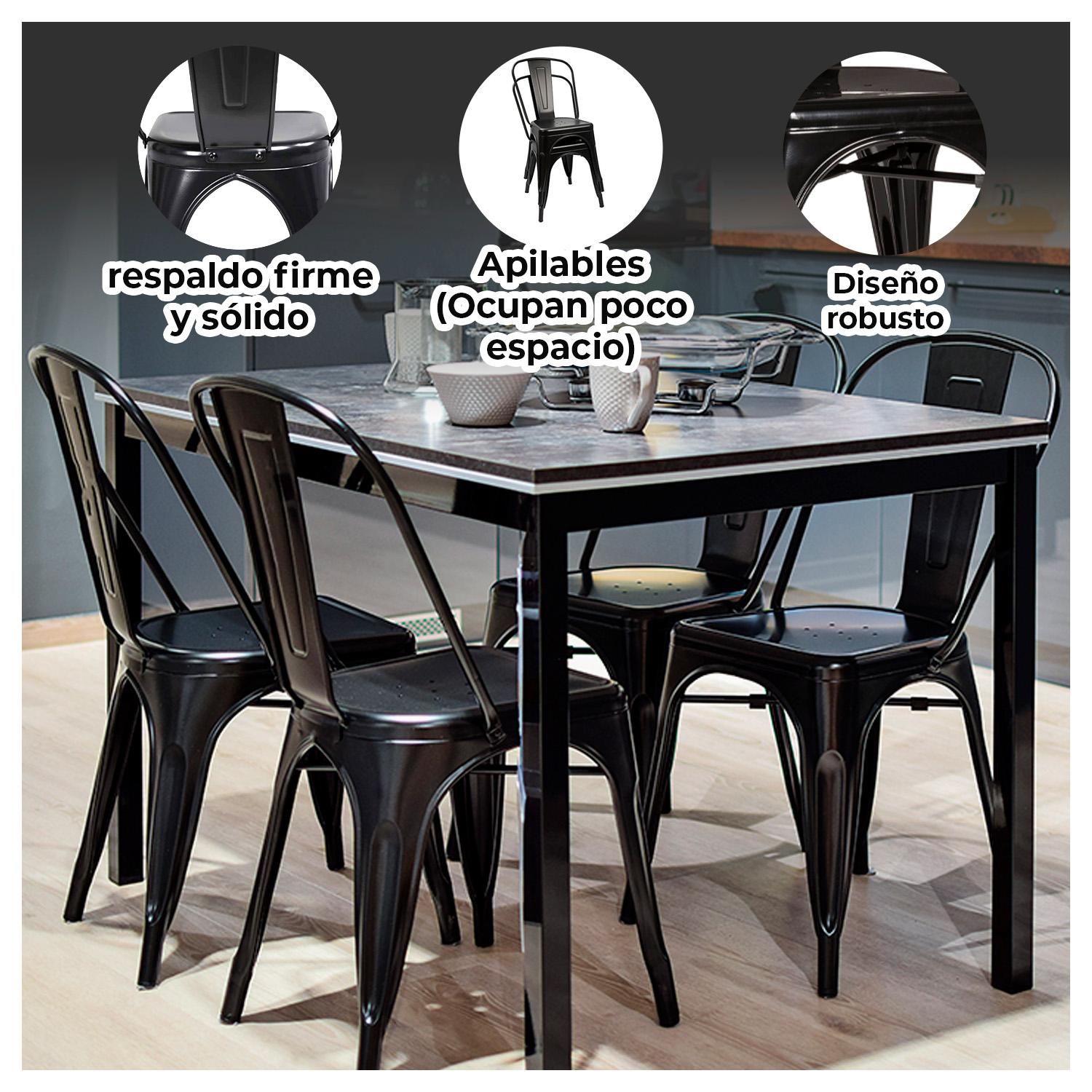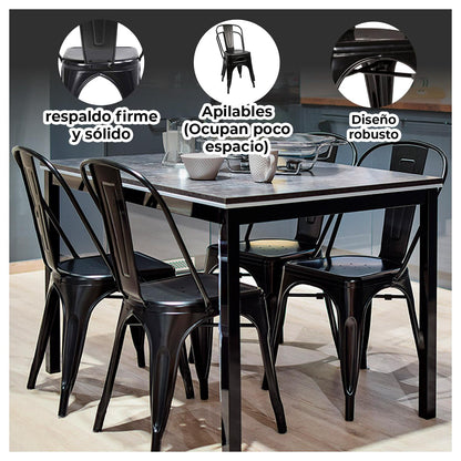 Silla de Comedor de Metal Negra Diseño Moderno y Apilable