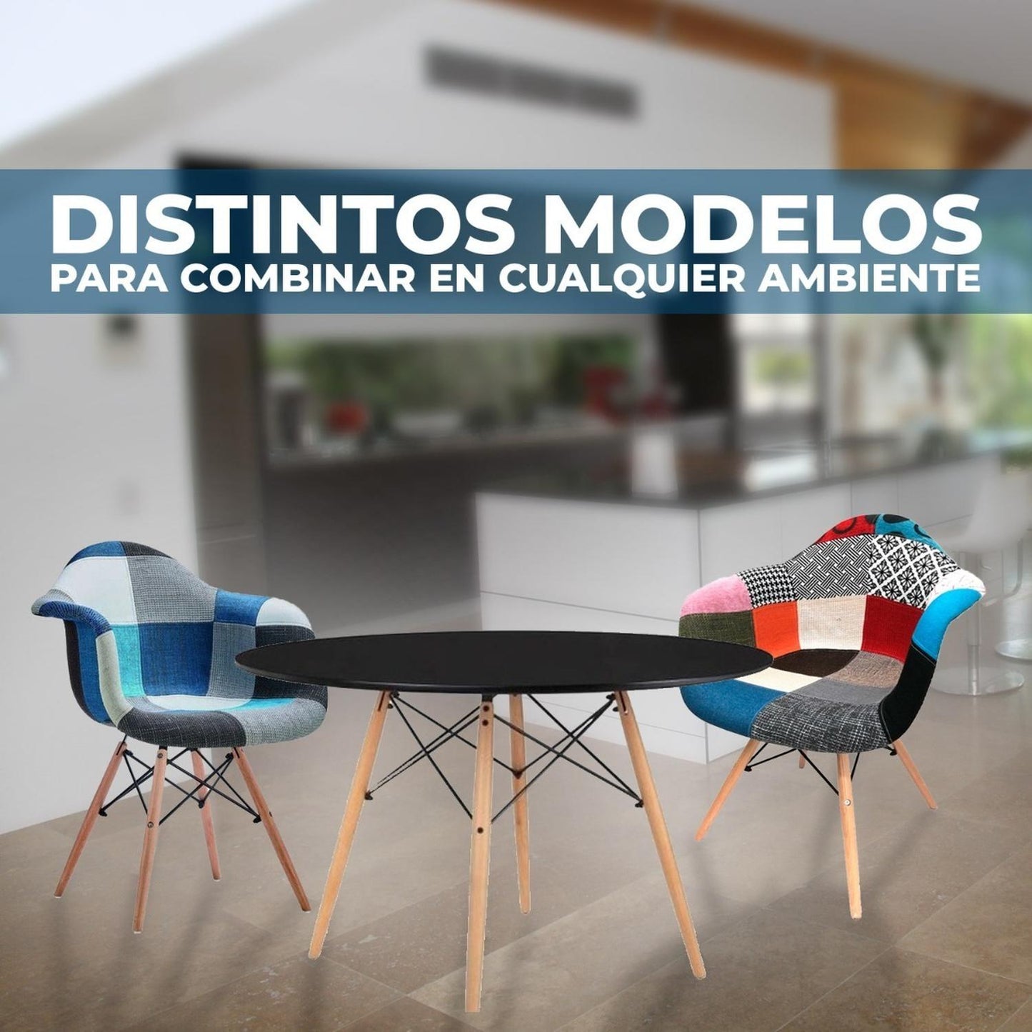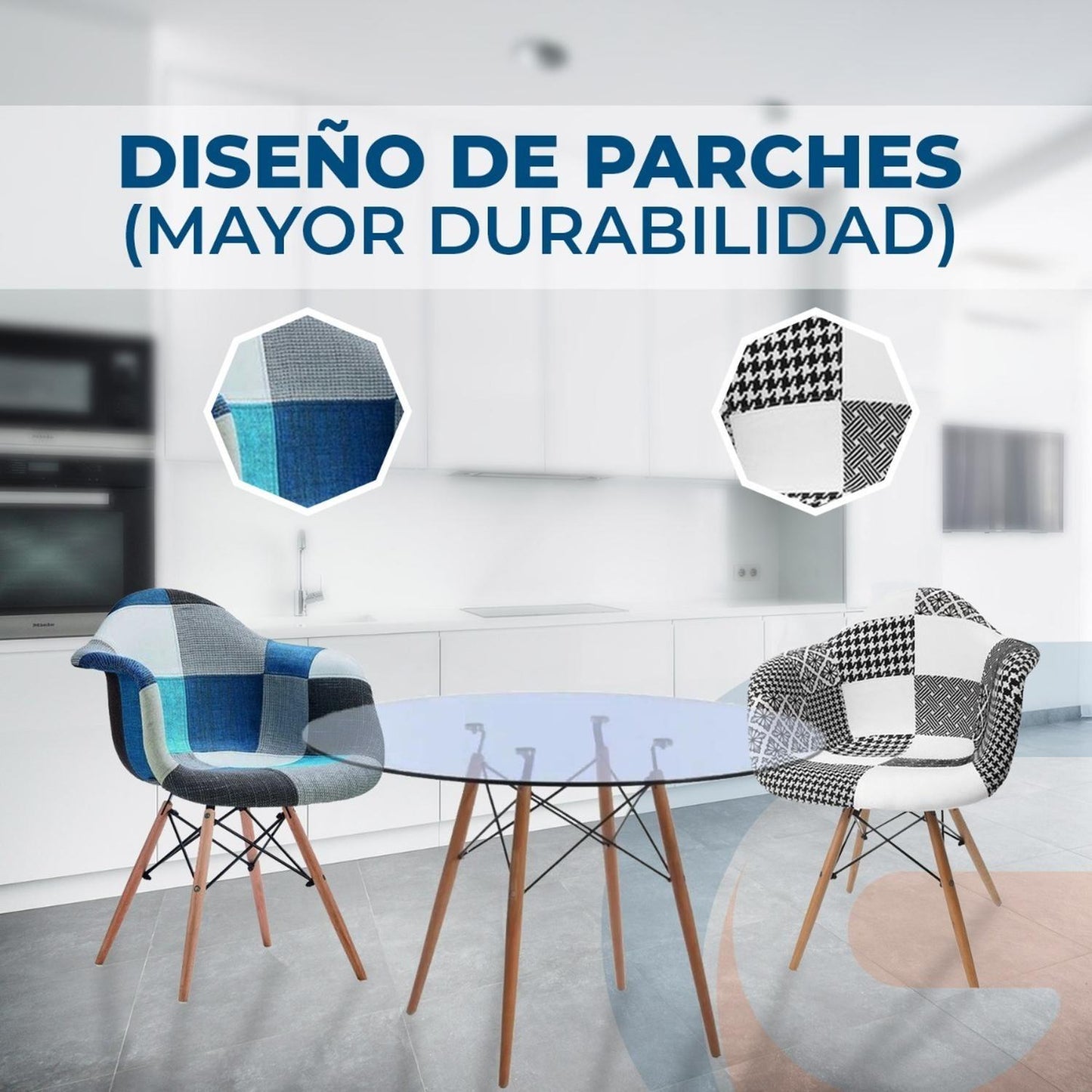 Silla De Diseño Eames Patchwork Color Blanco Y Negro
