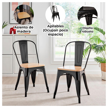 Silla de Metal con Asiento de Madera Diseño Vintage y Elegante