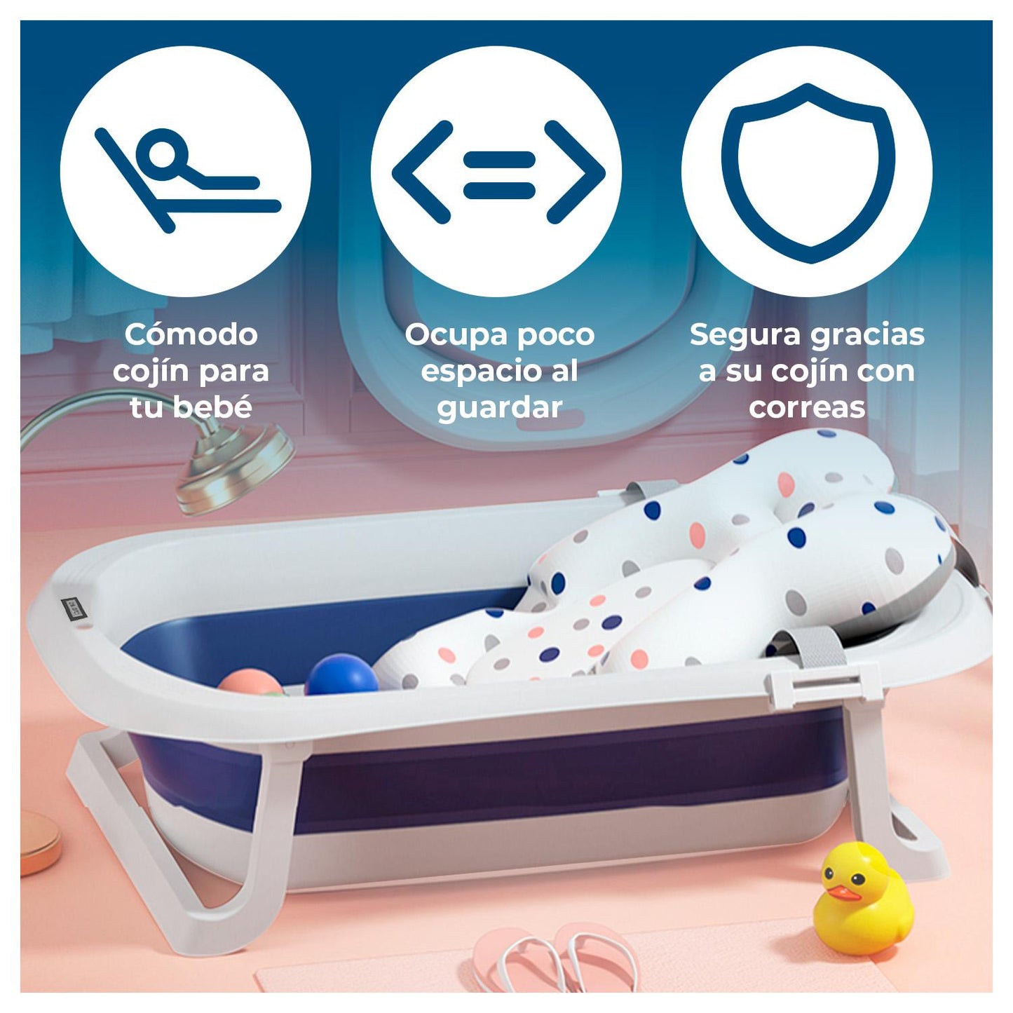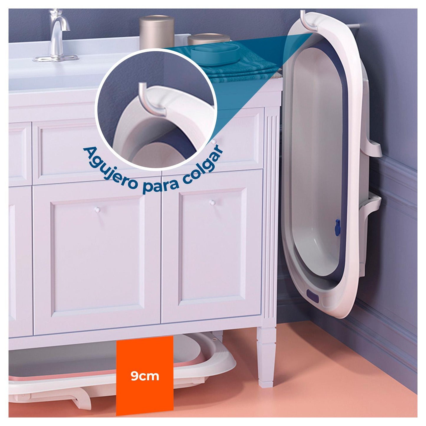 Diseño que ahorra espacio: con nuestras bañeras para bebés y niños pequeños, el almacenamiento nunca es un problema. Las bañeras para recién nacidos se pliegan en un artículo plano y pequeño que incluso se puede colgar para ahorrar espacio y dejar que se seque de forma natural.