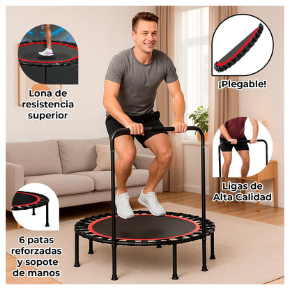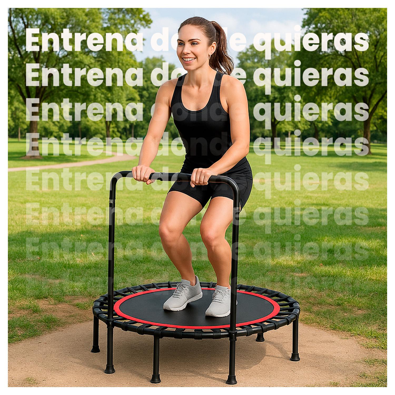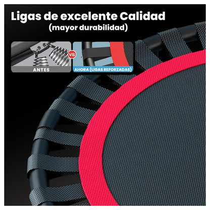 ¡Ejercítate desde casa como nunca antes! Este trampolín fitness está diseñado para personas que buscan mejorar su salud con bajo impacto y máxima estabilidad. Cuenta con ligas de alta resistencia en vez de resortes, lo que lo hace más seguro, silencioso y duradero. Además, su soporte ajustable te da confianza al saltar, y su sistema plegable lo vuelve ideal para cualquier espacio.