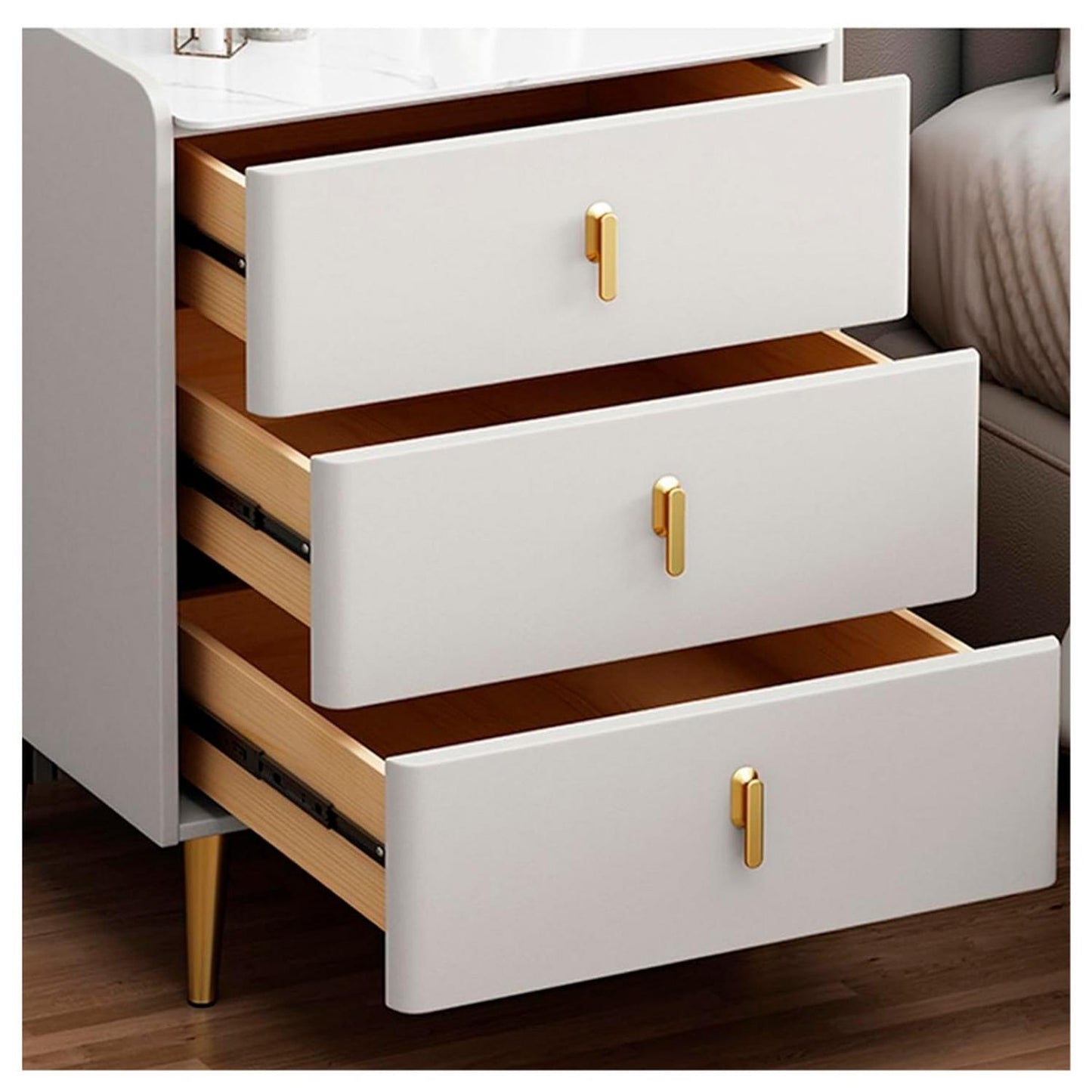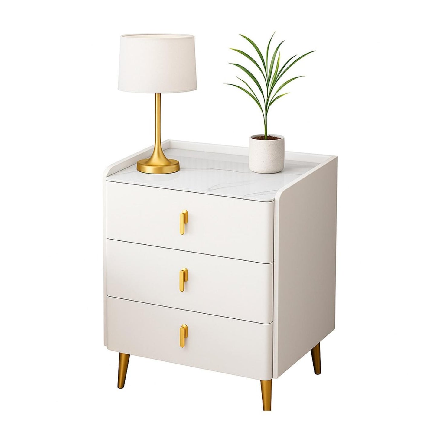 Velador 3 Cajones con Patas Doradas y Cubierta Tipo Mármol