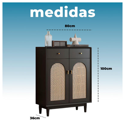 Dale a tu hogar un toque de lujo y funcionalidad con esta zapatera de diseño elegante y minimalista . Su combinación de tonos oscuros con detalles en ratán le da un toque vintage y moderno al mismo tiempo. No solo es un mueble organizador , sino una pieza decorativa única que transformará tu espacio. Con capacidad ideal para mantener tus zapatos ordenados y libres de polvo , además de dos cajones superiores perfectos para almacenar accesorios. ¡Haz que la organización se vea increíble!